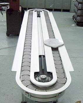 - Maxiveyors feature a steel chain running on hardened steel slide rail in a continuous loop. The conveyor has an extruded aluminum frame with T slots along its length for mounting control devices. The frame has internal steel reinforcement. A high torque, inverter duty SEW Eurodrive gear motor drives the conveyor.