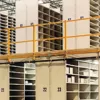 An Ivy League College needed to expand its records management. As well as archival storage, because the department has such a fast response, it provides current working file storage for the college. Maximizing the available shelf space for tens of thousands of storage boxes while still providing quick access was the challenge. We filled the 120' long x 90' wide x 16' high available space with double rows of single deep, single high shelving. We also supplied the guided vehicles that run in fourteen very narrow aisles, 42" wide, between the shelves.
